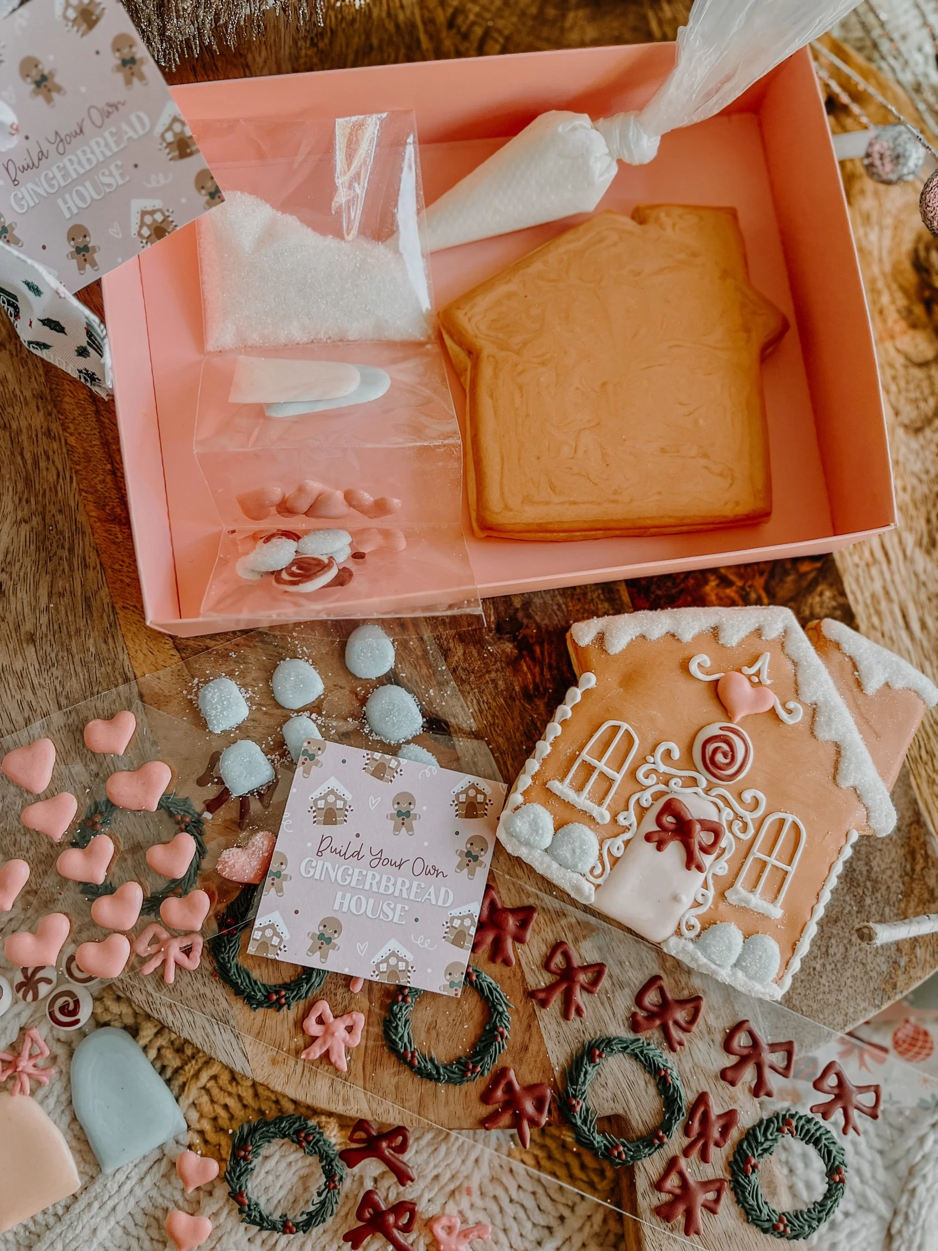 It comes with one large, pre-flooded vanilla bean sugar cookie (with a hint of cinnamon!), one bag of white icing, sparkling sugar, and royal icing decorations.