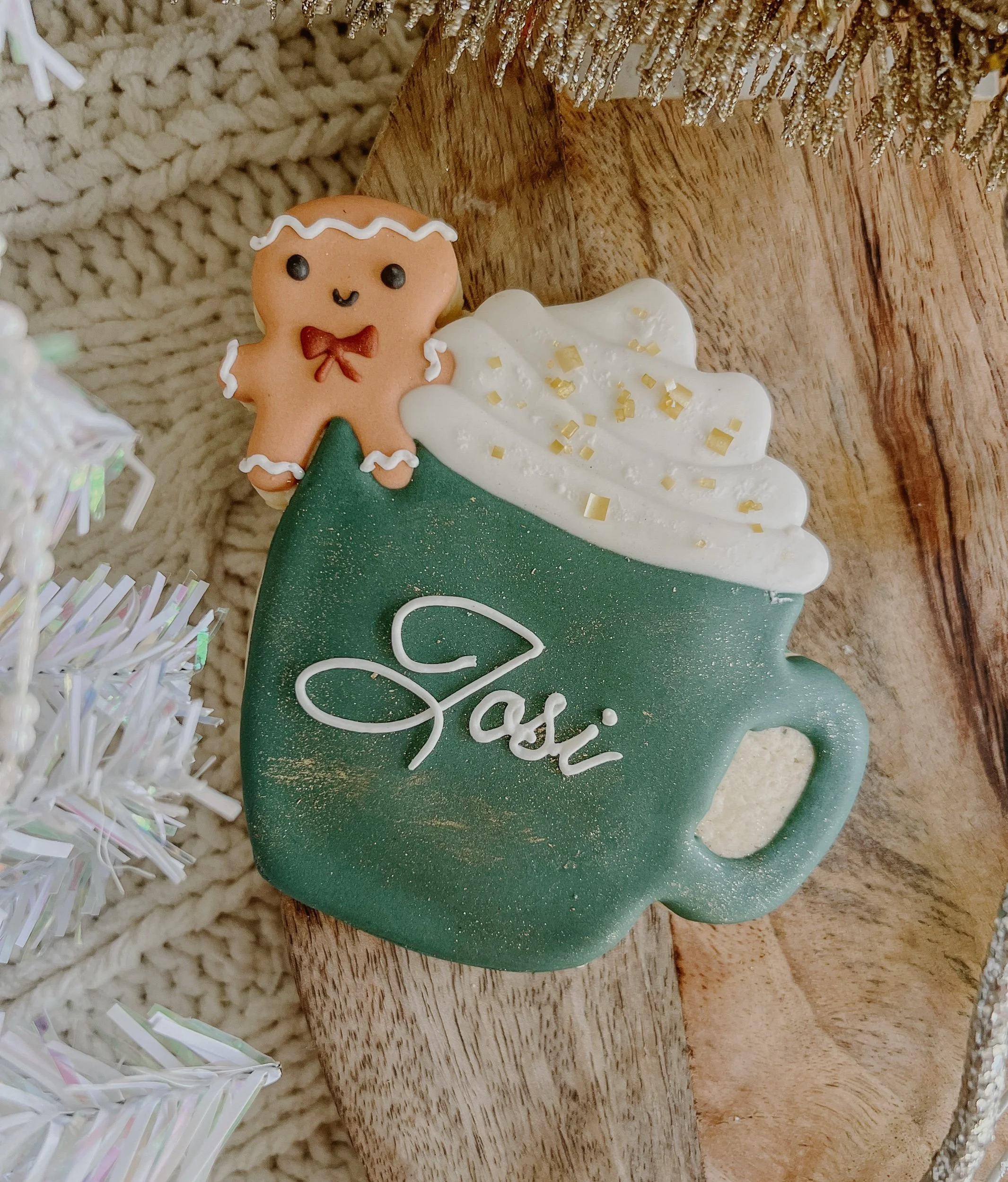 Comes with one cuuuuute personalized vanilla bean cookie, as shown. The cookie comes in a bag with a bow and a tag.