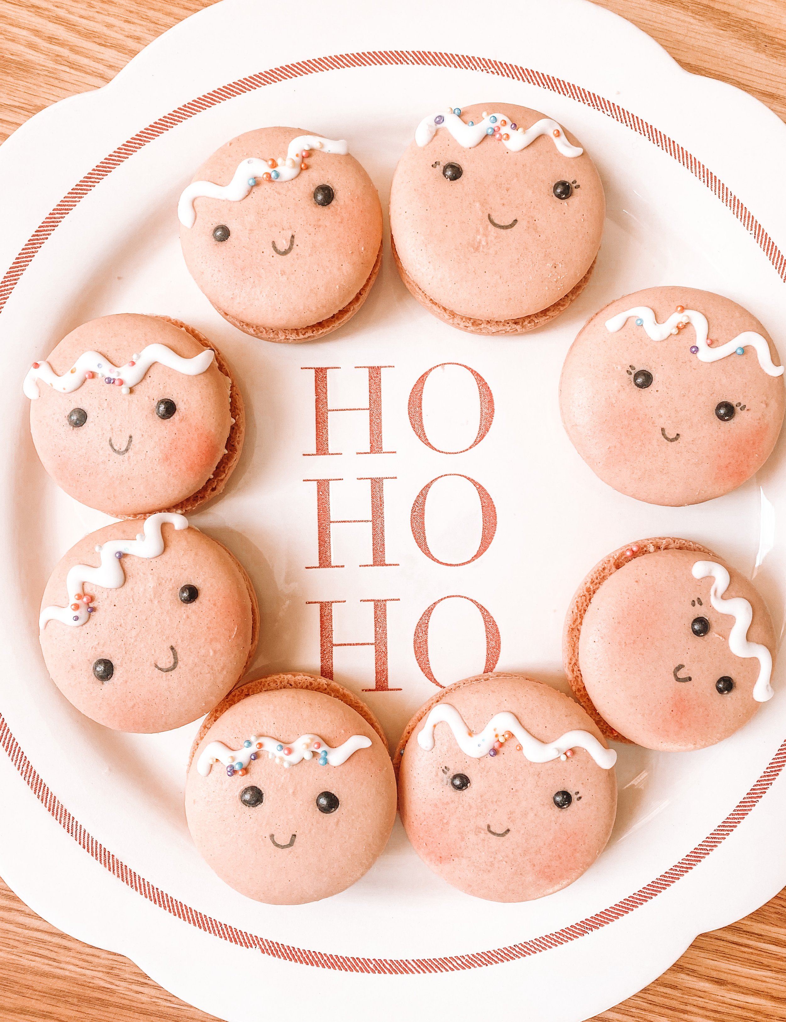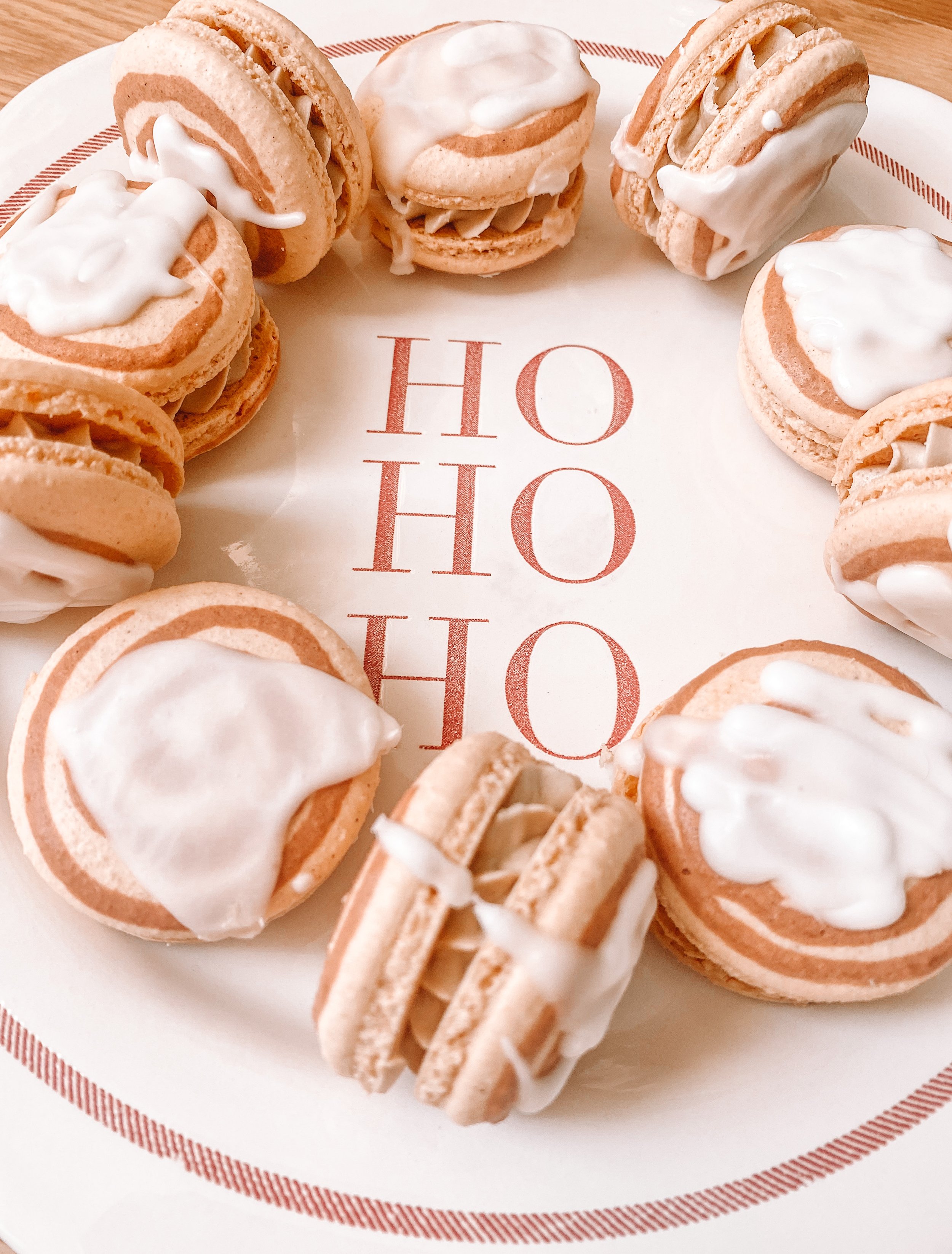 Adorably decorated macarons, filled with gingerbread spice buttercream.