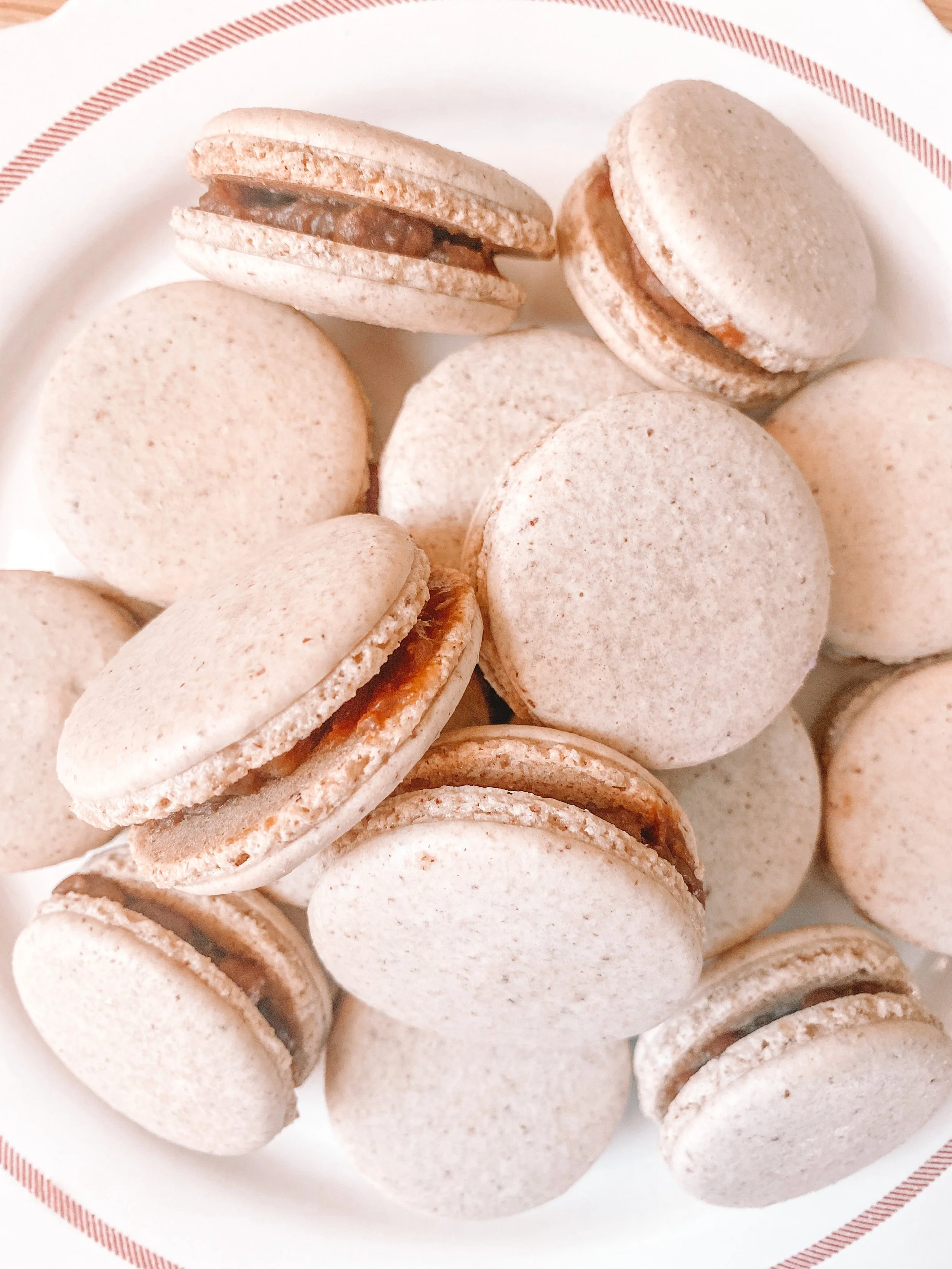Pecan/almond macarons, filled with crunchy butter pecan caramel