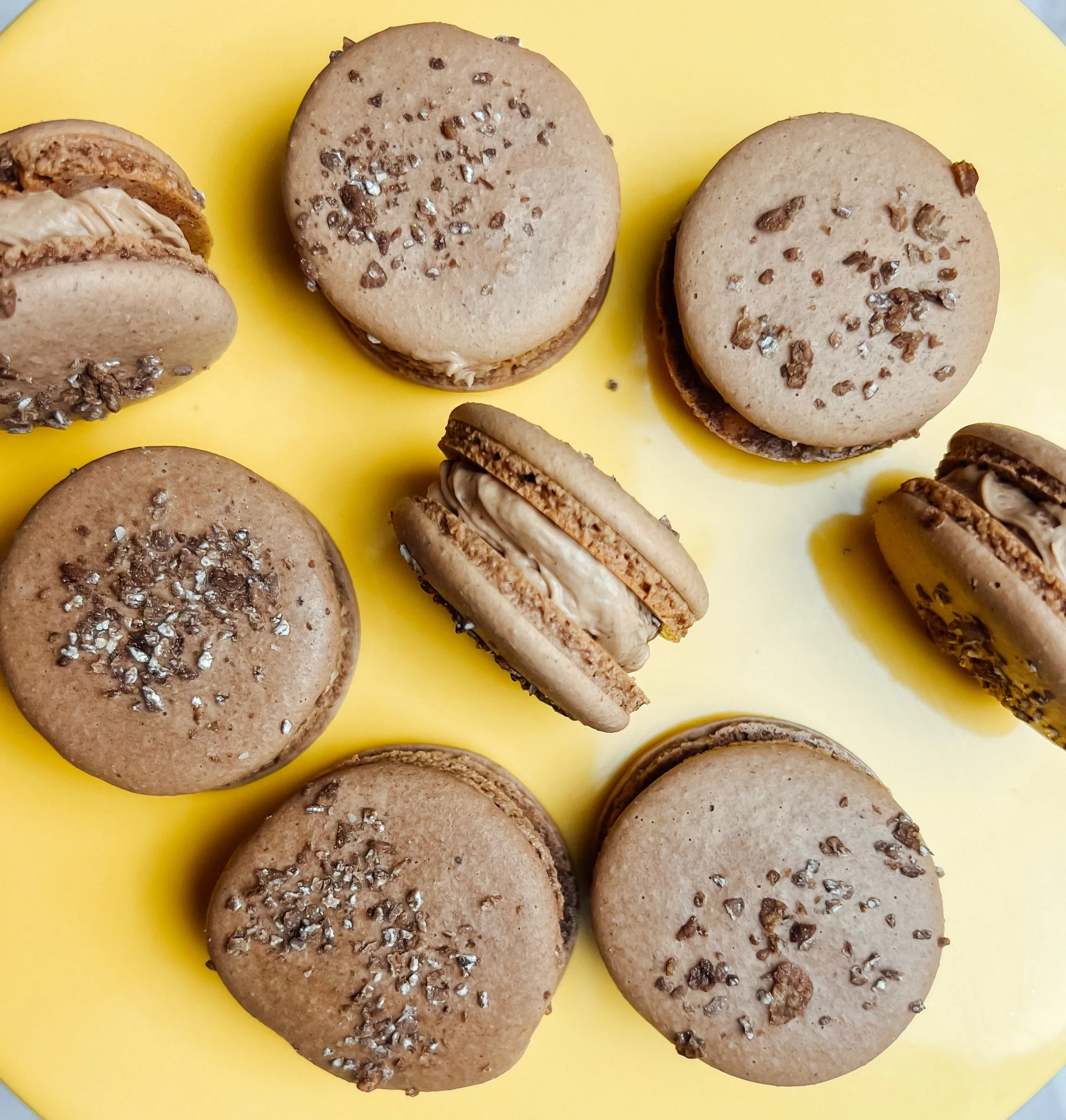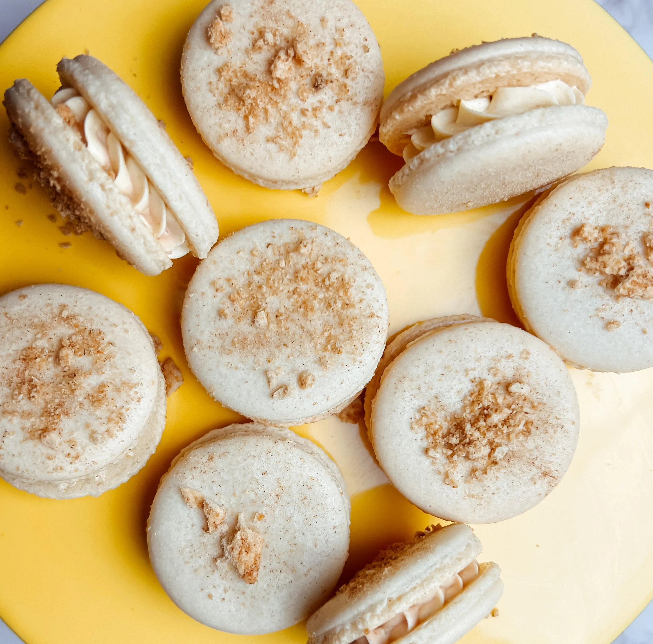 Macarons made with Cinnamon Toast Crunch Cinnadust, filled with Cinnadust buttercream, and topped with Cinnamon Toast Crunch crumbles.