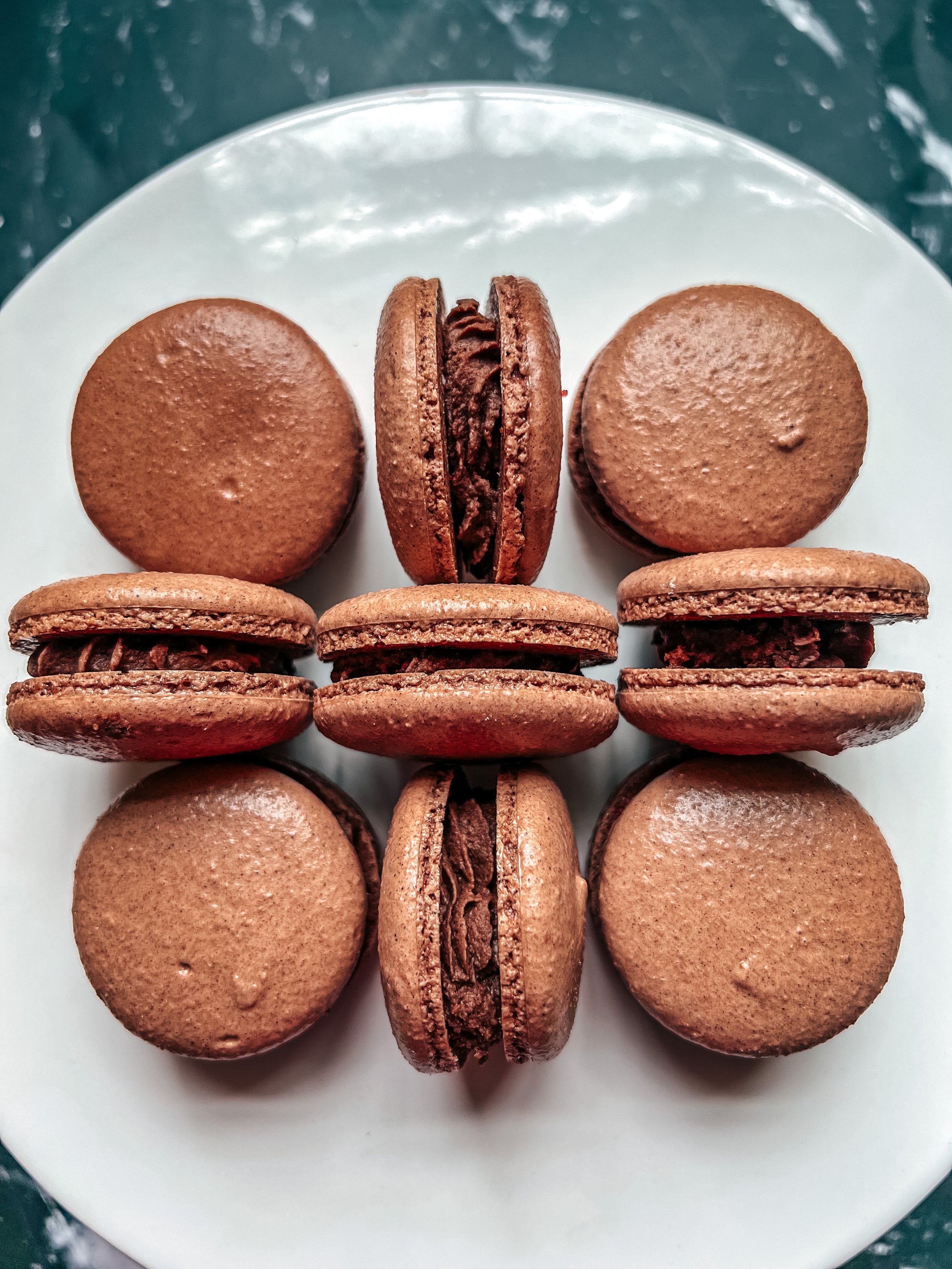 Chocolate macarons, filled with GF dark chocolate peanut butter cookie butter