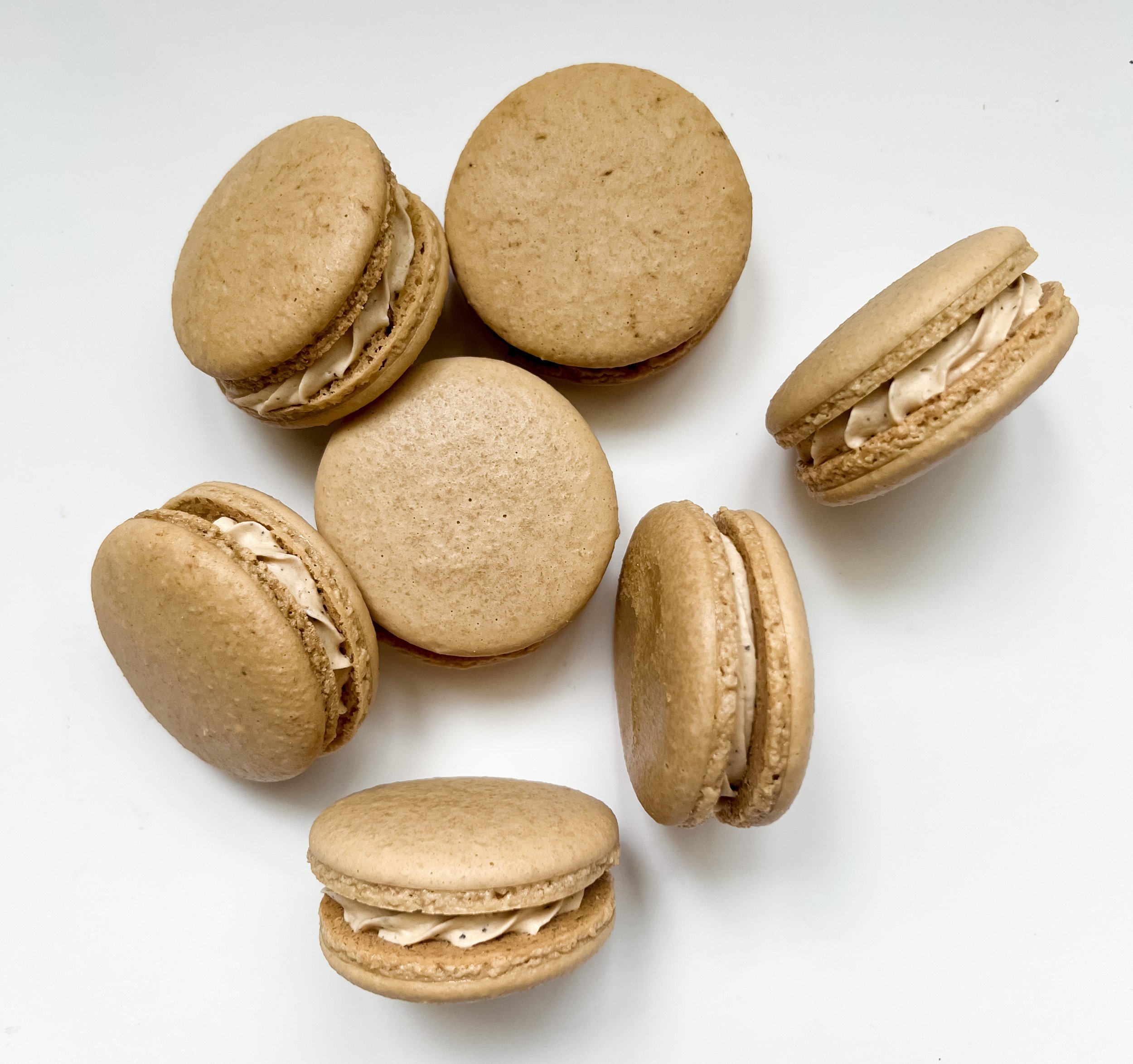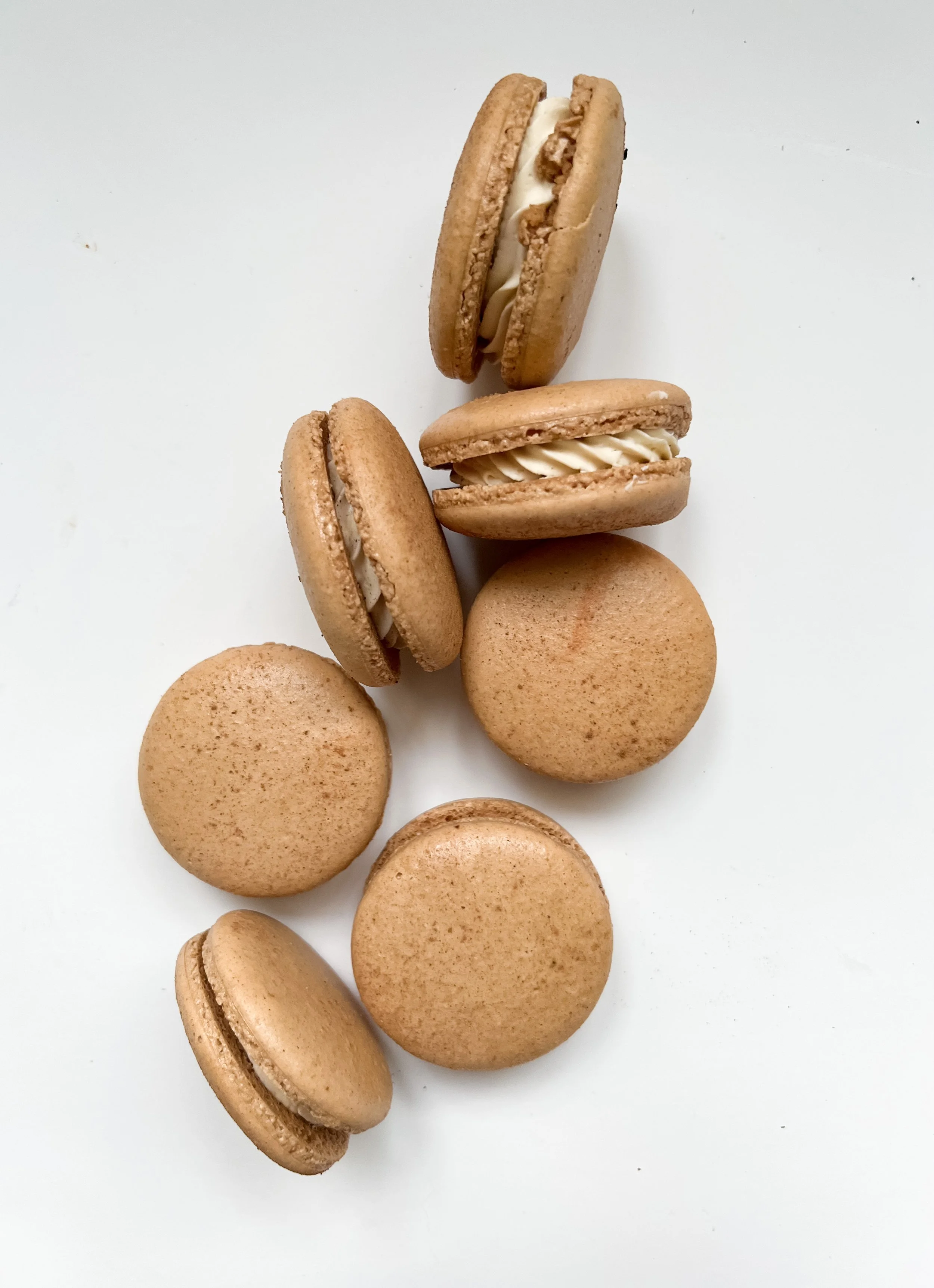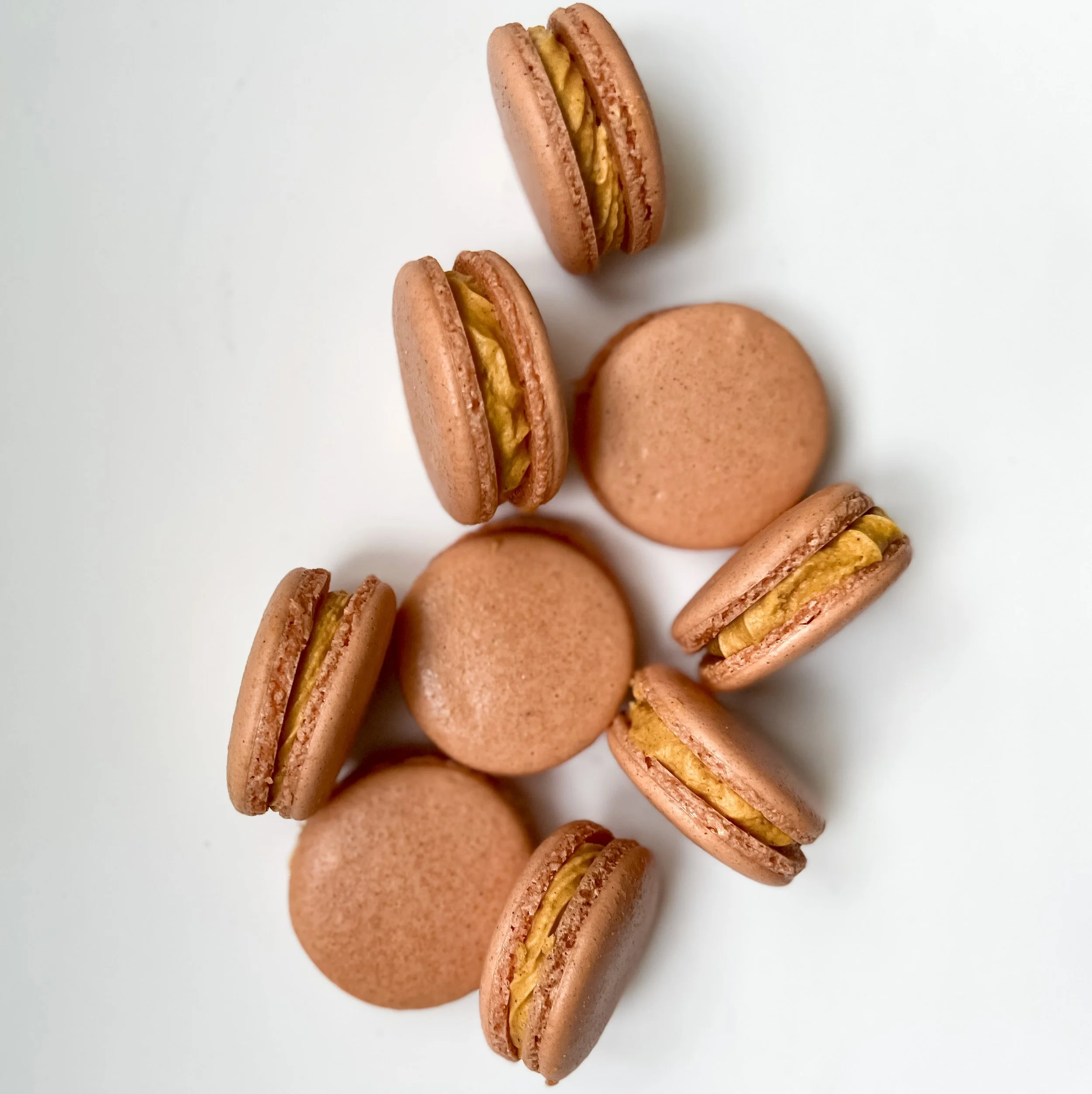 espresso flavored shells, filled with brown butter caramel buttercream and brown butter caramel